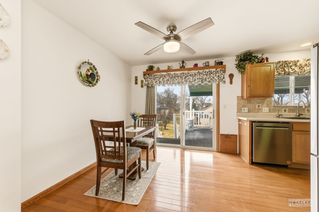 Welcome to this inviting raised ranch that shines with beautiful curb appeal and an abundance of perennial plants! Step inside to a bright, large living room that flows right into a spacious eat-in kitchen featuring stainless steel appliances & hardwood floors which cover most of the main level. With 3 bedrooms, office and two full bathrooms, this home offers a versatile layout, including the potential for two primary bedrooms-one on the main level and another on the lower level featuring a cozy fireplace and private bath. The lower level could also be used as a family room or home office. A chair lift is installed for access from lower level to main level for disability access. The outdoor space is a true highlight, boasting a 14x40 partially covered deck perfect for relaxing while overlooking over a 1/3 acre fenced yard complete with raised garden beds and a 14x16 storage shed. You'll also find an enclosed workshop, an attached garage, and a two-car wide driveway with an extra parking pad. Enjoy total peace of mind with a roof, furnace, central air, and water heater that are all five years old or less. Plus, you are perfectly situated within walking distance to David Carroll Memorial Citizens Park, Lions Corner Park, and the local disc golf course. Welcome home!