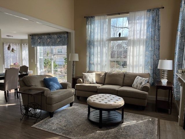 This stunning end-unit townhome offers the perfect blend of style, space and natural light. Soaring vaulted ceilings create an open, airy feel, while an abundance of oversized windows fills the home with sunshine from every angle. The inviting living area is anchored by a beautiful fireplace, adding warmth and charm to the space. A versatile den on the main floor provides the ideal space for a home office, reading nook or flex room to suit your lifestyle. The kitchen is both functional and elegant, featuring gleaming granite counters, SS appliances and a lovely bay window that creates the perfect spot for casual dining or morning coffee. There is an additional space for more formal dining. Upstairs, you'll find three spacious bedrooms, including a serene primary retreat, along with an elegant full bathroom designed with comfort and sophistication in mind. With its premium end-unit location, thoughtful upgrades, and light-filled design, this home truly stands out as a refined and comfortable place to call your own.