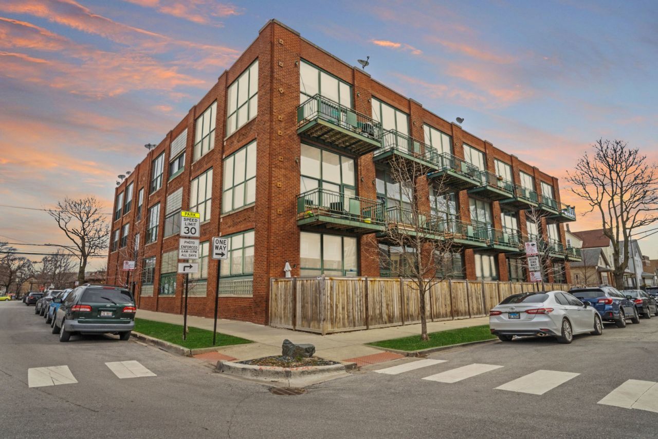 Set inside a converted poster factory, 2654 W. Medill #208 delivers true loft living with classic brick-and-timber character and modern upgrades throughout. This bright, south-facing one-bedroom, one-bath home stands out with its dramatic 13-foot ceilings and expansive layout. The main living space offers incredible flexibility, with room for both a full dining setup and a large lounge area anchored by a fireplace. Automatic blackout curtains add convenience, while a private balcony extends the living space outdoors. The kitchen has been refreshed with stainless steel appliances and flows seamlessly into the open-concept living area, making it ideal for everyday living or entertaining. Hardwood floors have been recently refinished, giving the entire home a clean, updated feel. In the bedroom, you'll find enough space for a California King bed, along with a newly designed walk-in closet that maximizes storage. A separate den/office provides a dedicated work-from-home setup. Additional features include an in-unit washer and dryer, plus a generously sized storage cage in the basement. The unit also comes with gated parking for an extra $150.00 a month. Residents enjoy access to a fitness center, bike room, and freight elevator within the building. Located in Logan Square, the home is just a short distance from the California Blue Line and surrounded by popular neighborhood spots for dining, coffee, and nightlife. A unique opportunity to own a spacious, character-filled loft in one of Chicago's most sought-after neighborhoods.