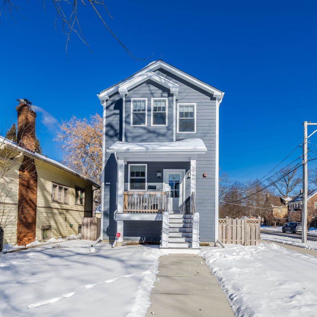 Come see this newer construction (2023), 5-bedroom, 3.5-bathroom home located in highly sought after northwest Evanston. This corner-lot home located on a beautiful, tree-lined street offers the perfect combination of quite space and close proximity to everything Evanston has to offer. This sun-filled home boasts thoughtful design and exquisite finishes throughout. The main level has an open floor plan containing a massive kitchen, with two dishwashers, and accompanying wet bar with beverage center. The second level master ensuite contains two large closets and spa-like bathroom. The spacious full finished basement provides flexible living space with family room, full bath, office/exercise room, and bedroom. This home has zoned HV/AC capabilities and option to house laundry on the 2nd floor, basement, or both. The detached 2-car garage grants you ample bonus storage along with the generous in-home storage space. The fully fenced yard provides room to relax, garden, or entertain in a private retreat. You'll love walking the neighborhood to parks, playgrounds, and Perkins Woods. Conveniently located near the Central street corridor, downtown Evanston, the beach, Northwestern University, the Metra, and Route 41 making a commute to Chicago seamless. Discover everything this remarkable home has to offer.