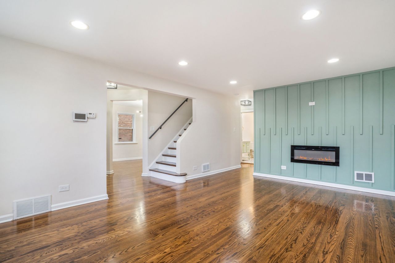Welcome to this beautiful and spacious 4-bedroom, 2.5-bath brick home that perfectly blends modern updates with classic charm. The main level features a bright living room with an accent wall and electric fireplace, a welcoming dining room, and a stunning updated kitchen with quartz countertops, new flooring, and stainless steel appliances, including a stove, refrigerator, dishwasher, and microwave. This floor also includes a bedroom and a half bathroom, offering flexibility and convenience. Upstairs, you'll find two spacious bedrooms and a full bathroom with a jacuzzi and beautifully updated with new flooring, a modern vanity, and bright lighting. The finished basement provides additional living space with the fourth bedroom, full bathroom, family room, wet bar, and laundry area - perfect for entertaining and relaxing. Enjoy the spacious backyard with a patio deck, ideal for gatherings and outdoor fun, plus a two-car garage for parking and storage. This move-in-ready home offers comfort, style, and plenty of space - a perfect place to call home!